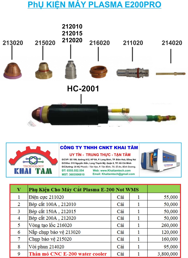 Báo Giá Phụ Kiện Đầu Plasma HC-2001